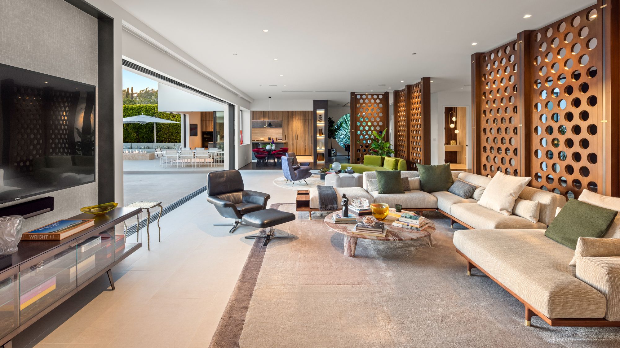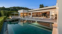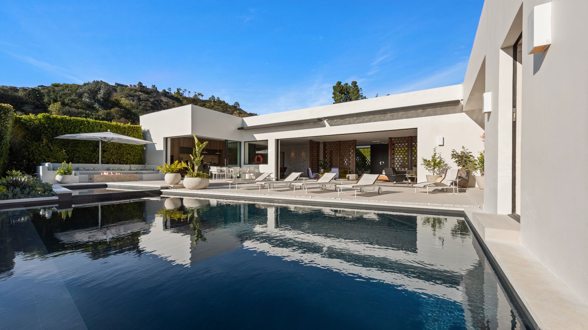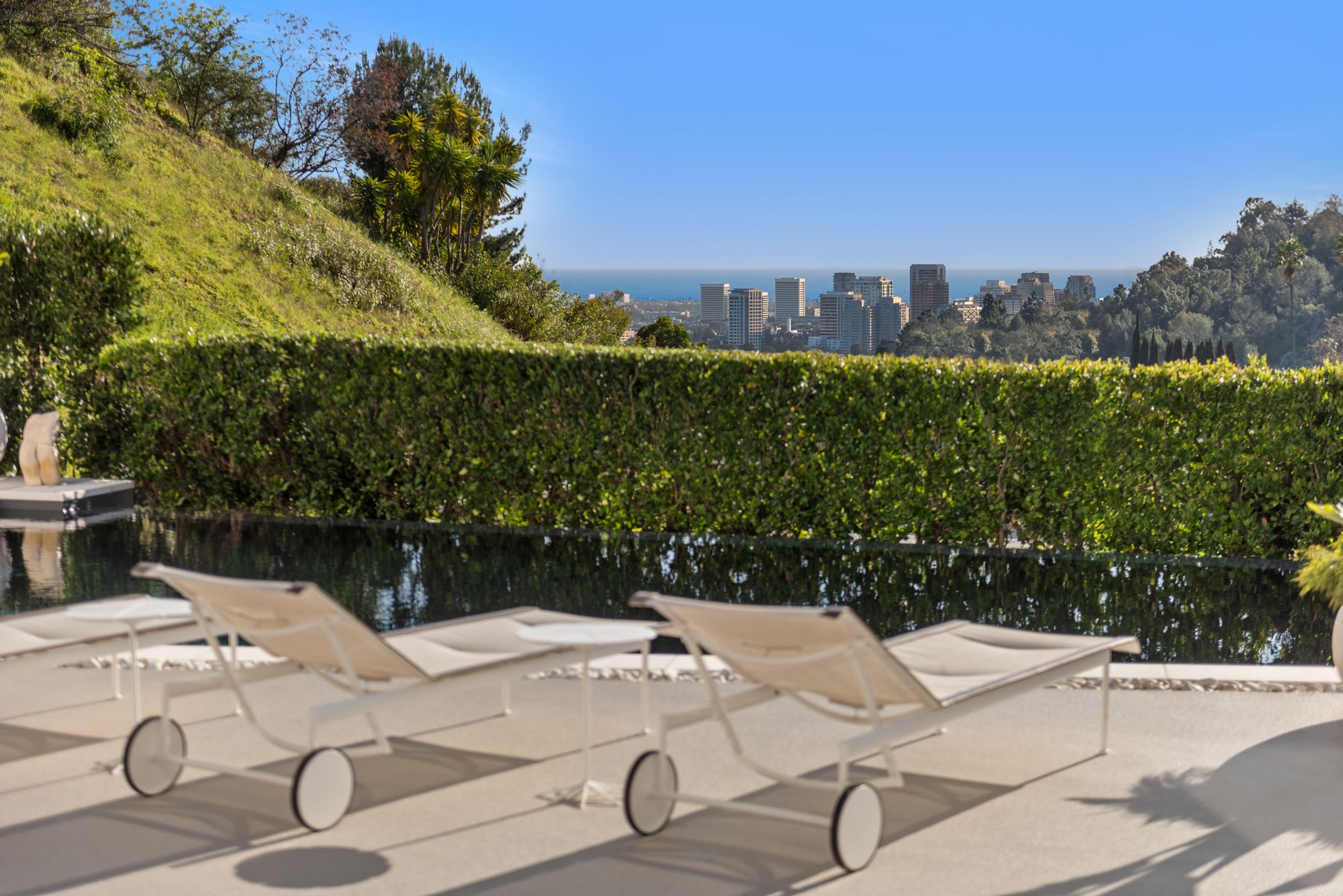 This beautiful modern estate has been completely rebuilt in every detail, chic and sophisticated. Situated on an exceptionally large 25,000 SF lot with expansive views from Beverly Hills to the ocean. Quintessential Hollywood style and a grand entryway lead to a living room w/floor-to-ceiling sliders that open to a Slim Aarons picturesque backyard & pool. A master suite fit for the most discerning buyers: Featuring a luxurious bathroom w/his and hers sinks & free standing dark green lucite tub, a walk-in-closet, bar and private lounge. Infinity pool with spa and impressive outdoor fire pit area perfect for indoor/outdoor entertaining. Many dreamed of a lifestyle as sweet as this. You were born in the right time & earned it. Don't miss out on one of the most stylistic, effortlessly beautiful homes in Trousdale.